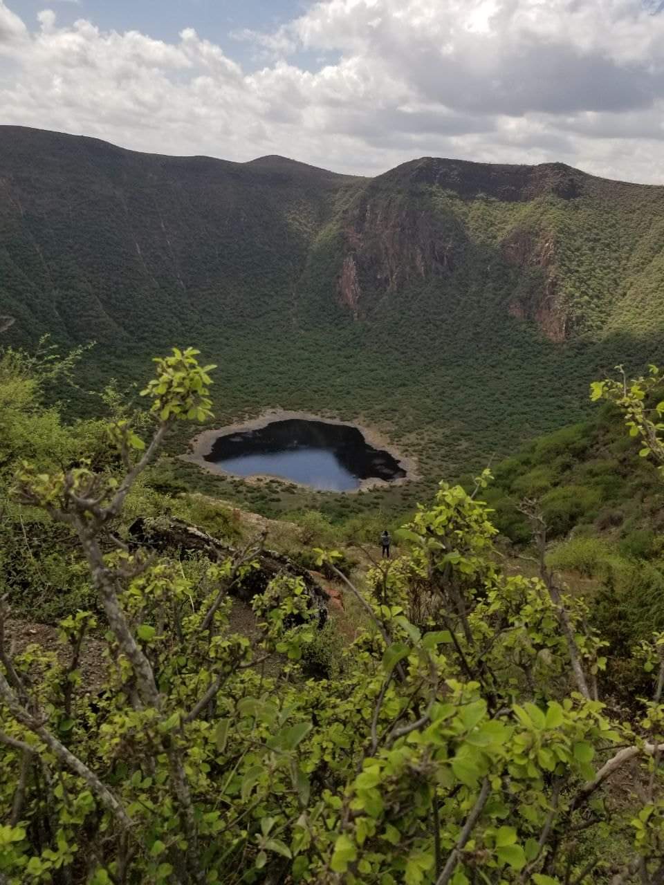 From above, the crater reveals a stark landscape of black rock and ochre soil. But at its center lies something unexpected: a dark lake, its surface still and mysterious, hiding in its depths a treasure that has drawn people here for centuries.