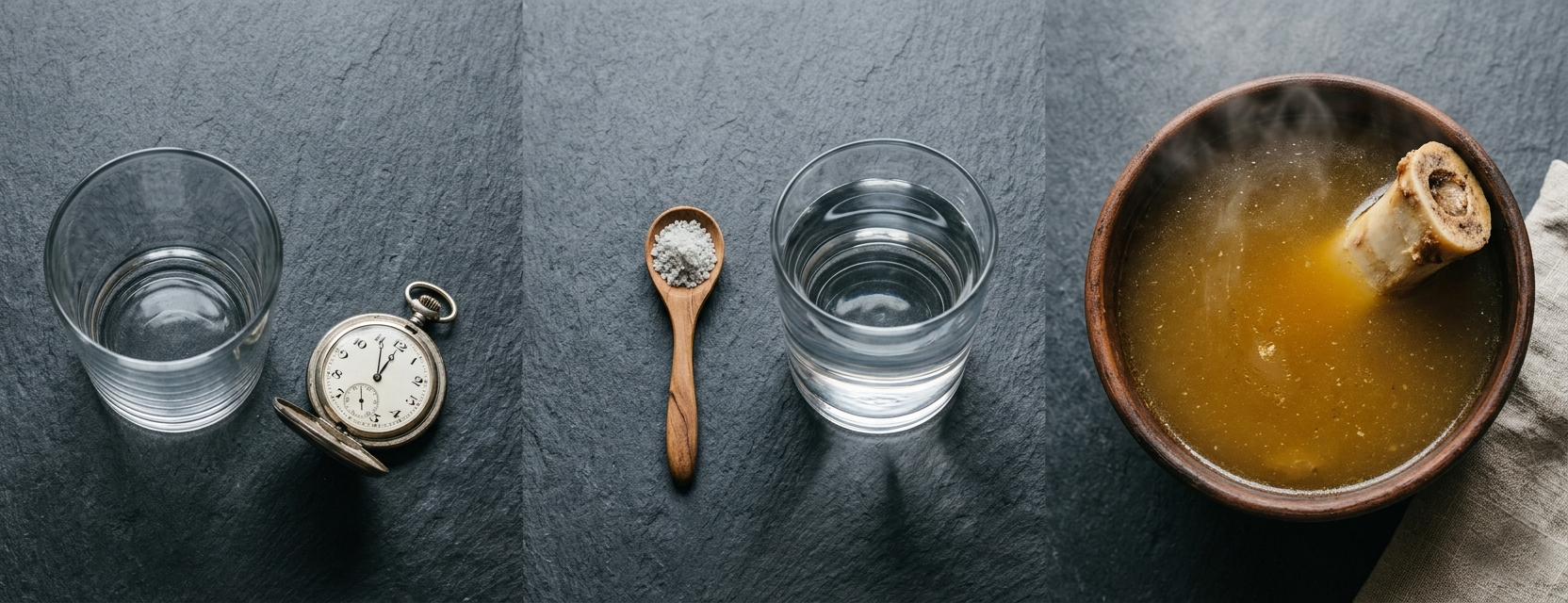 I did not try to sell her anything. I explained the sequence. Short dry fasts of 8 to 12 hours. Mineral priming with warm water and full-spectrum salts. A two-hour wait. Broth from indigenous bones and tendons.